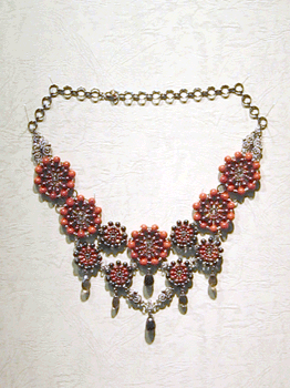 | 今回のメインアクセのひとつ。スポンジサンゴと天然石たっぷり。 |