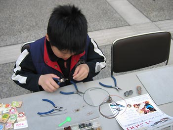 コミセンはいつも子供さんのお客様が多いですが、今日は前回の土曜市で「やりたい」と言ってた小学生の男の子、慶次郎君(写真参照)が一番乗りでワークショップに参加です。