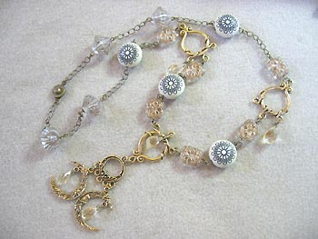 川中さん:アンティークゴールドの月型メタルパーツを組み合わせてモチーフを作り、Y字型のネックレスを制作されました。