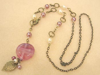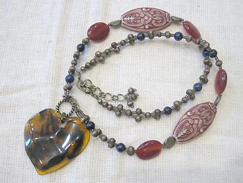 山本さん:マーブル模様の平たいとんぼ玉を作り、ラリエットタイプのロングネックレスに加工されました。