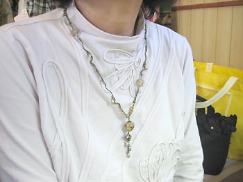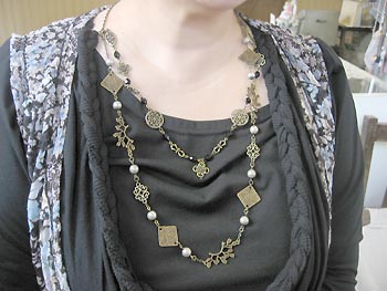 志野さん:色々なメタルパーツをつなげて、2蓮のロングネックレスを制作されました。