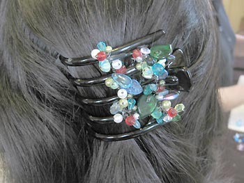 岡野さん:色々なチェコビーズを使って、クリップタイプの髪留めを制作されました。