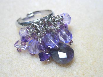 それからもうひとつ、チェコビーズとアメジストを使ったフリンジリングも作られました。