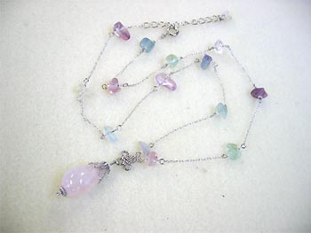 継野さん:淡いフローライトのさざれを使った、華奢なチェーンネックレスを制作されました。