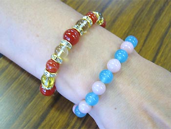 浮田さん:天然石の丸玉を使ったゴムのブレスレットを制作されました。