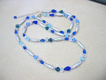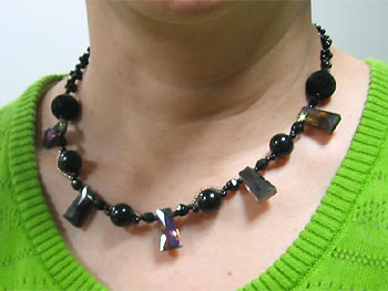 村上さん:アクリルビーズやカットグラスを使ったロングネックレスを制作されました。