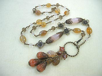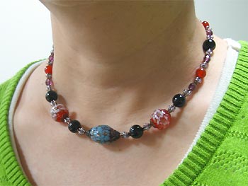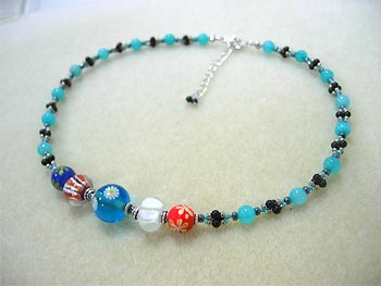 中さん:とんぼ玉をポイントにした天然石とグラスビーズのワイヤーネックレスを制作されました。