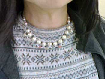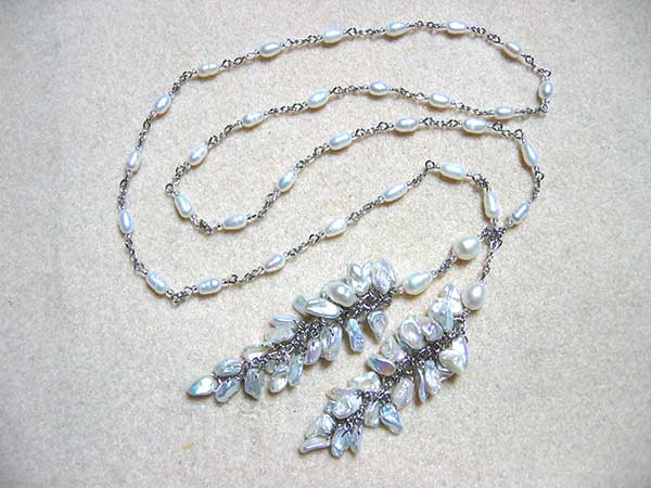 中さん:淡水パールをたっぷり使ったラリエットを製作中です。