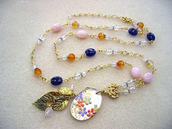 古川さん:桜模様の白蝶貝を使った天然石のネックレスを制作されました。