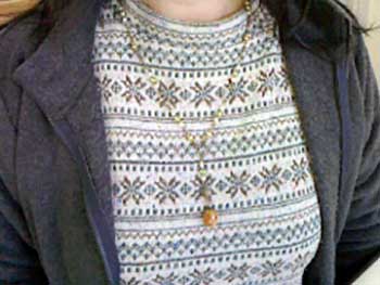 トップのモチーフを活かして、ネック部分を編み込みんでいます。