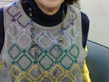 宇都本さん:お友達から頼まれたネックレスをリメイク中です。
