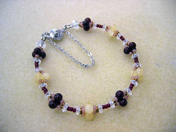 赤いカーネリアンと黄色いジェイドのコントラストが素敵です。