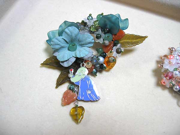 井上さんのお宅訪問教室、お二人の好きなキャラクターのチャームを使ったブローチを制作されました。