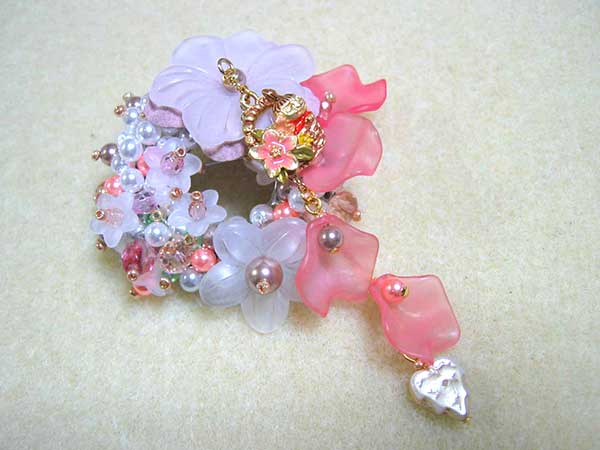 浮田さん:アクリルパールをカラフルに使ったブローチを制作されました。