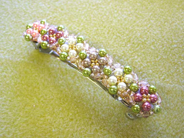 高岡さん:アクリルパールの小さなモチーフを連ねたものを貼り付けたバレッタを制作されました。