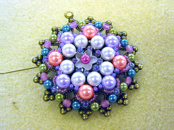 畠岡さん:アクリルパールをカラフルに使ったブローチを制作されました。