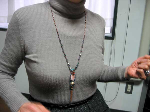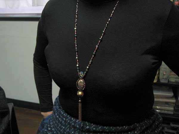 中さん:カットグラスを使ったY字型のワイヤーネックレスを制作されました。