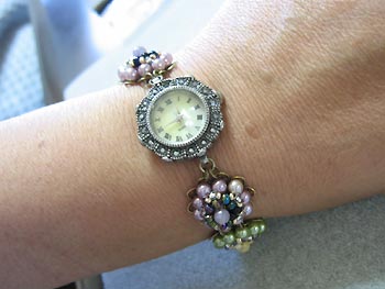 グラスパールと天然石でブレスウォッチを制作されました。