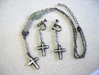 ご注文いただいていたツートンのスワロフスキーの十字架パーツを使って、モノトーンのチェーンネックレスとお揃いのイヤリングを制作されました。