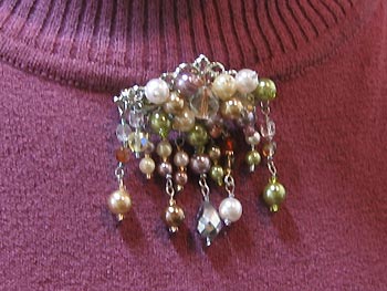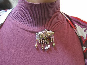 透かしパーツを土台に色々な樹脂パーツを合わせたブローチを制作されました。