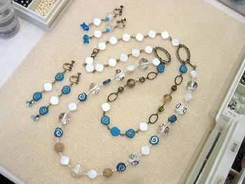 ブルーレースと、似た色合いのチェコビーズを使ってロングネックレスを制作されました。